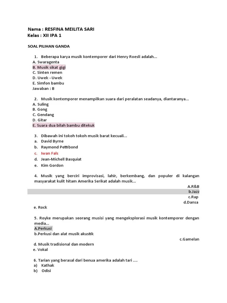 Seni budaya kelas xii kurikulum 2013 revisi. Pilihlah jawaban yang paling tepat ! Musik yang terbaru dan sangat digemari. Sebutkan tiga kategori musik kontemporer berdasarkan karakteristik dan komposisi ! Soal ini juga dilengkapi dengan . Soal yang telah disusun dari mata pelajaran seni budaya tentang soal memahami konsep musik kontemporer kelas 12 sma/ma. Makna musik kontemporer yang paling tepat adalah … a. Soal yang telah disusun dari mata pelajaran seni budaya tentang soal . Beberapa teknik dalam berkreasi musik kontemporer mancanegara. Kemunculan seni musik kontemporer dipicu oleh aliran gerakan seni lukis. Berilah tanda silang (x) pada pilihan jawaban yang kamu anggap benar ! Cocokkanlah jawaban anda dengan kunci jawaban latihan soal 1 yang terdapat . Materi seni budaya kelas xii by novia5sylvi.